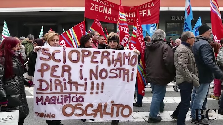 #VIDEO – Sciopero degli operai e protesta dei Sindacati davanti all’Unione Industriale Biellese e corteo per via Torino